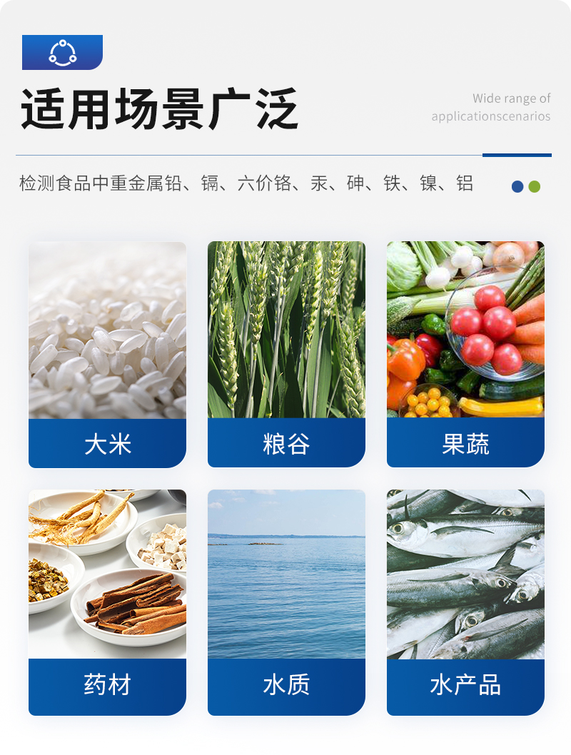儀器用途: 山東天研儀器有限公司生產(chǎn)的食品重金屬檢測(cè)儀為集成化食品安全快速檢測(cè)分析設(shè)備,采用手提箱一體化設(shè)計(jì),重金屬檢測(cè)儀可廣泛應(yīng)用于大米、糧谷、果品、蔬菜、藥材、水產(chǎn)品中重金屬鉛、鎘、六價(jià)鉻、汞、砷、鐵、鎳、鋁的快速檢測(cè),檢測(cè)項(xiàng)目可根據(jù)日后需求可進(jìn)行遠(yuǎn)程升級(jí)。 該食品重金屬檢