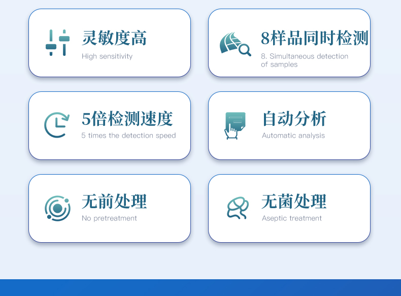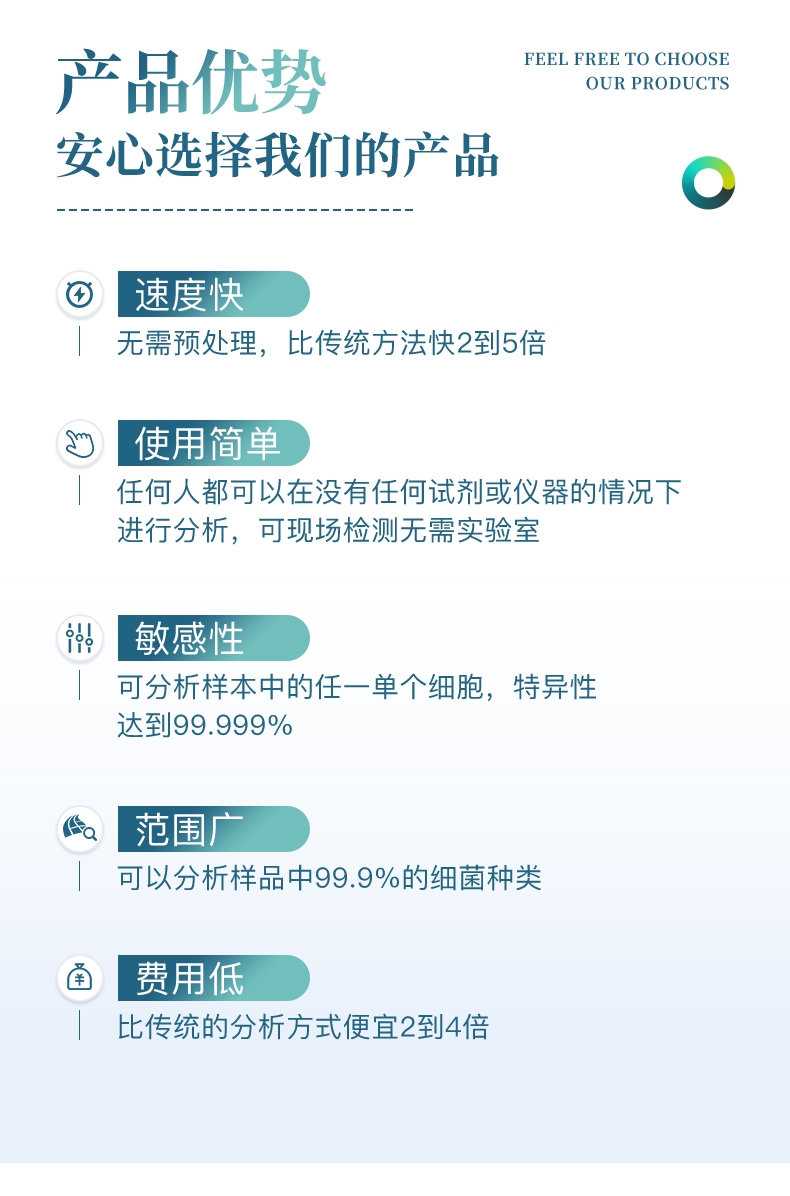 5、 靈敏度高達(dá)可檢測(cè)到1目標(biāo)微生物;特異性高達(dá)99.999%;