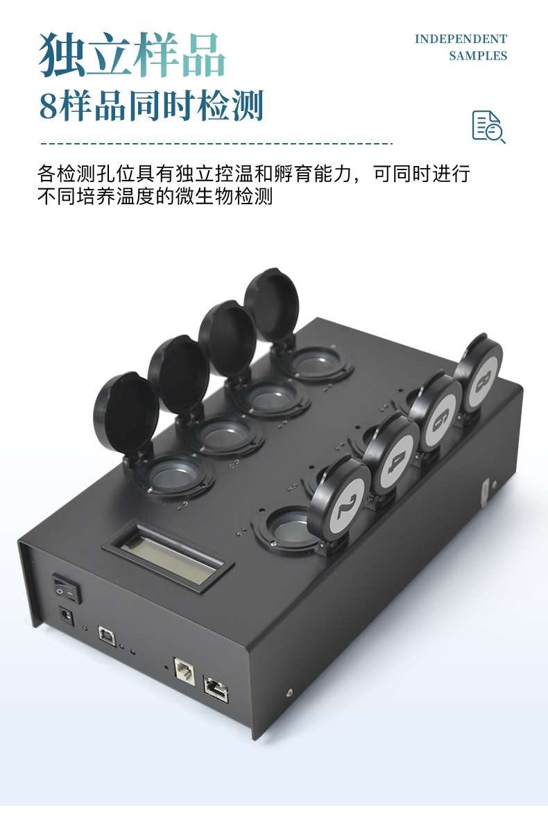 4、 檢測(cè)樣本只需1ml/1g;同一溫度下可同時(shí)檢測(cè)8個(gè)樣品;