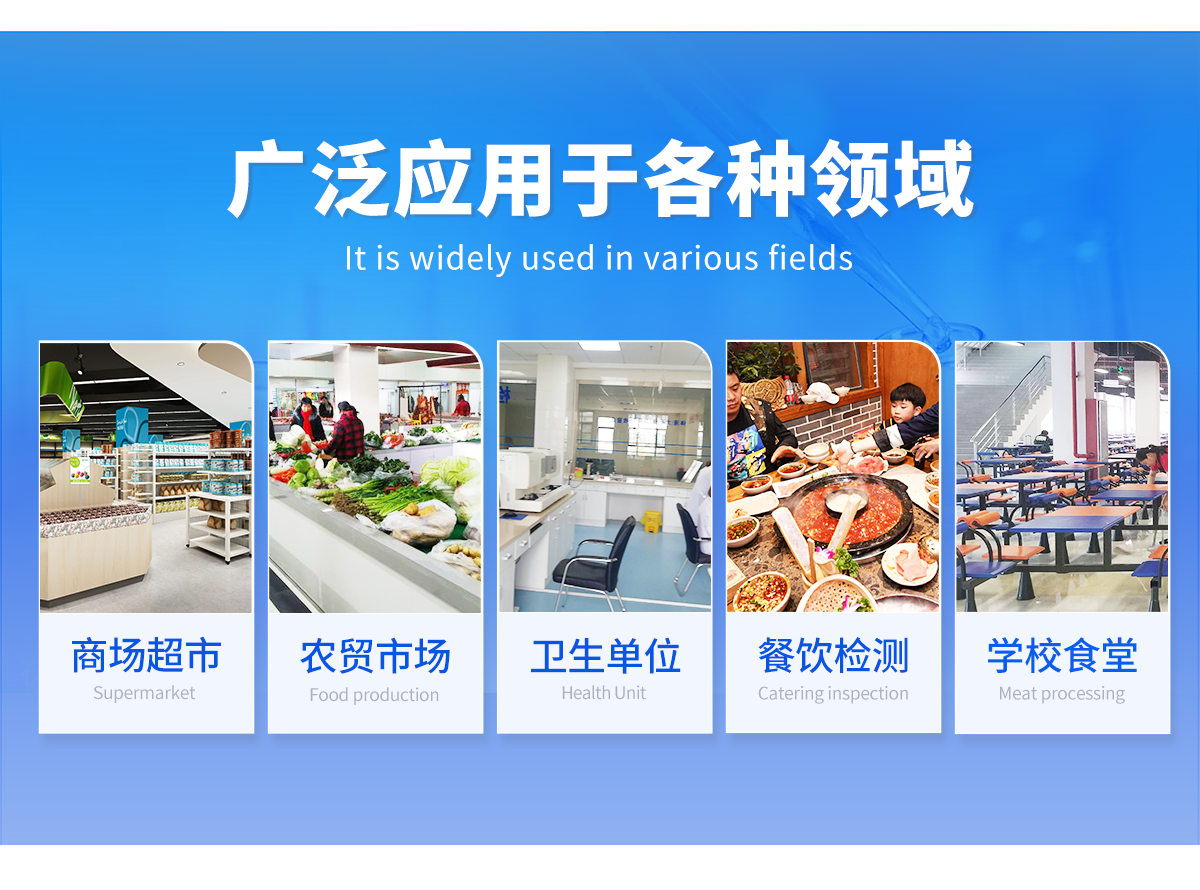 廣泛應(yīng)用于主要用于蔬菜、水果、茶葉、糧食、農(nóng)副產(chǎn)品等食品中有機(jī)磷和氨基甲酸酯類農(nóng)藥殘留的快速檢測;此外還可用于果蔬茶生產(chǎn)基地和農(nóng)貿(mào)批發(fā)銷售市場現(xiàn)場檢測,餐館、學(xué)校、食堂、家庭果蔬加工前的安全速測等,為廣大人民的生活安全提供保障。