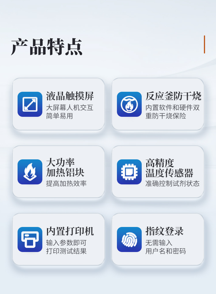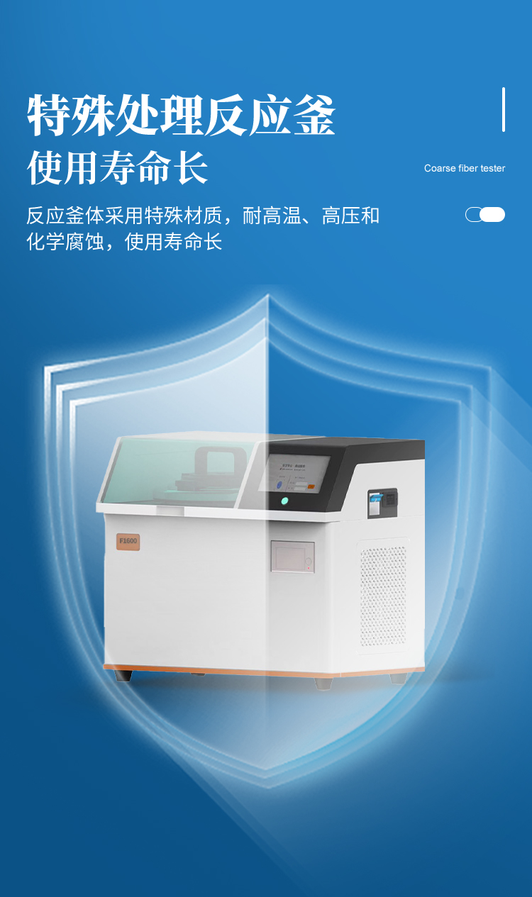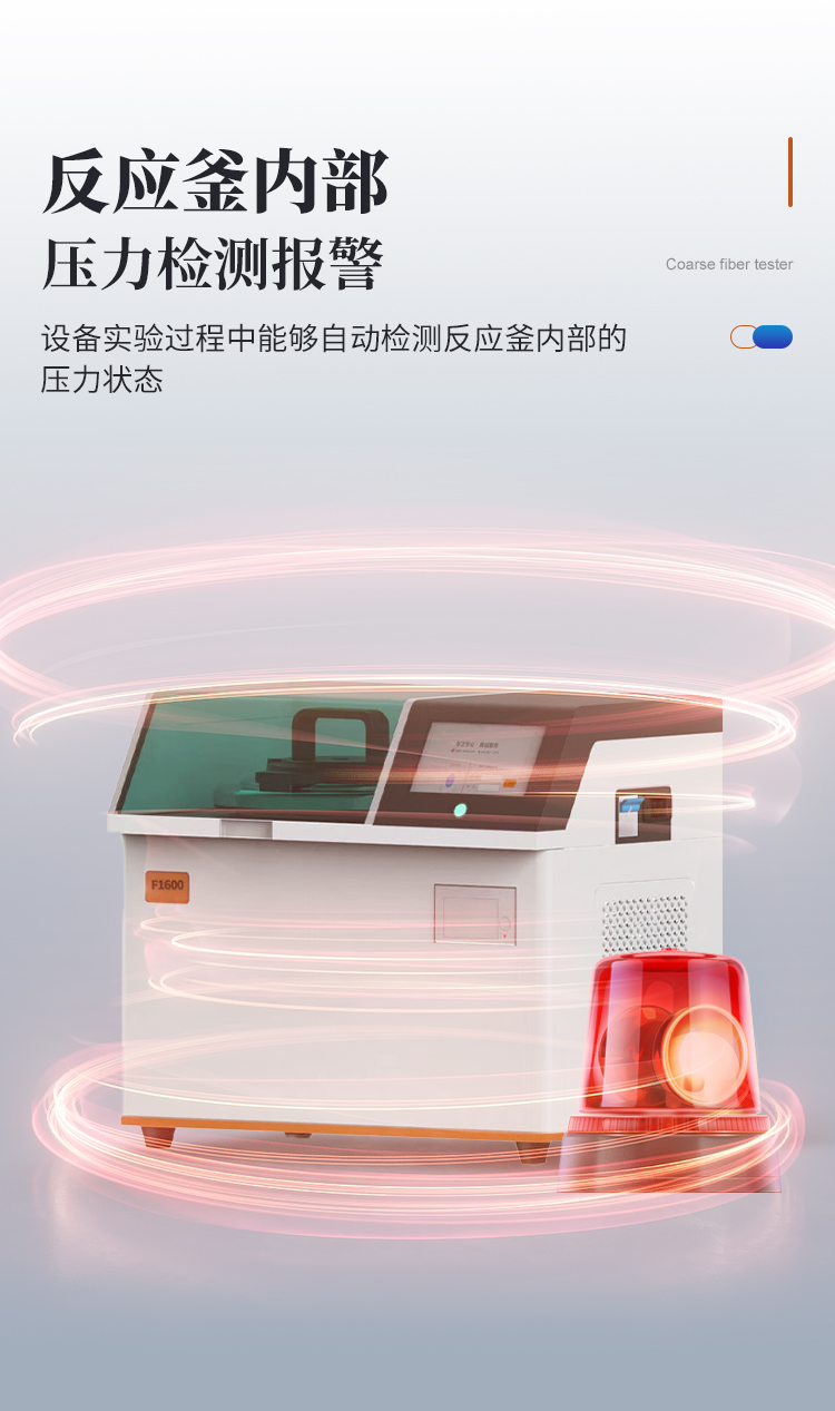 | 1、濾袋式纖維測定儀是遵循**和國標(biāo)規(guī)定的消煮法,利用化學(xué)溶劑提取纖維含量,很好的解決了坩鍋抽濾、轉(zhuǎn)移法所造成的費工費時、火力控制不當(dāng)、殘渣易損失等問題,全自動進行溶劑加注、恒溫加熱、消煮、震蕩、廢液排出等操作。適用于測定粗纖維CF、酸性洗滌纖維ADF、中性洗滌纖維NDF、酸性洗滌木質(zhì)素等的測定。 | 2、運用技術(shù):濾袋技術(shù),適用于CF、NDF、ADF方法的纖維分析。 | 3、大屏幕人機交互界面,16位真彩色液晶觸摸屏,操作界面簡單易用,便于用戶的學(xué)習(xí)和使用。 | 4、內(nèi)置可設(shè)置的實驗方案,共可以設(shè)置50種不同的實驗方案。 | 5、內(nèi)置用戶登錄功能,共有5個用戶賬戶。 | 6、內(nèi)置用戶賬戶權(quán)限設(shè)置,每個登錄賬戶均可設(shè)置自己的操作權(quán)限,不同等級的操作權(quán)限對機器能進行操作的功能不一樣。 | 7、指紋登錄功能,無需輸入用戶名和密碼,使用錄入的指紋信息即可登錄,更加方便快捷。 | 8、內(nèi)置儀器功能部件檢測功能,儀器內(nèi)部所有的可動工作部件在屏幕上均有對應(yīng)的檢測開關(guān),方便用戶日常維護。 | 9、特殊處理反應(yīng)釜,反應(yīng)釜體采用特殊材質(zhì),耐高溫、高壓和化學(xué)腐蝕,使用壽命長。 | 10、反應(yīng)釜防干燒功能,內(nèi)置軟件和硬件雙重防干燒保險,防止釜體干燒。 | 11、反應(yīng)釜密閉性自檢技術(shù),反應(yīng)釜能夠在實驗過程中進行密閉性自檢,防止反應(yīng)釜蓋不緊。 | 12、放泡沫結(jié)構(gòu)設(shè)計,獨特的消煮結(jié)構(gòu)能夠有效防止試劑加熱時產(chǎn)生的泡沫,且無需添加正辛醇等消泡劑,節(jié)省試劑且更環(huán)保無異味。 | 13、采用大功率加熱鋁塊,提高加熱效率。 | 14、密閉消煮技術(shù),實驗過程中產(chǎn)生的蒸汽不會擴散到設(shè)備以外,實現(xiàn)了不需要冷卻水進行冷卻的微沸消煮功能,設(shè)備使用更加方便。 | 15、**控溫技術(shù),反應(yīng)釜內(nèi)部安裝有高精度溫度傳感器,**控制試劑為微沸狀態(tài),實驗效果好。 | 16、反應(yīng)釜內(nèi)部壓力檢測報警功能,設(shè)備實驗過程中能夠自動檢測反應(yīng)釜內(nèi)部的壓力狀態(tài),一旦溫度過高導(dǎo)致壓力過大會自動產(chǎn)生報警并暫停實驗,同時屏幕上會自動彈出報警界面。 | 17、實驗完成提示功能,一旦整個實驗完成設(shè)備會自動產(chǎn)生蜂鳴聲進行提示,同時屏幕上也會顯示實驗完成的提示界面。 | 18、內(nèi)置3種纖維的結(jié)果計算公式和打印機,無需人工計算,輸入?yún)?shù)即可打印測試結(jié)果。 |