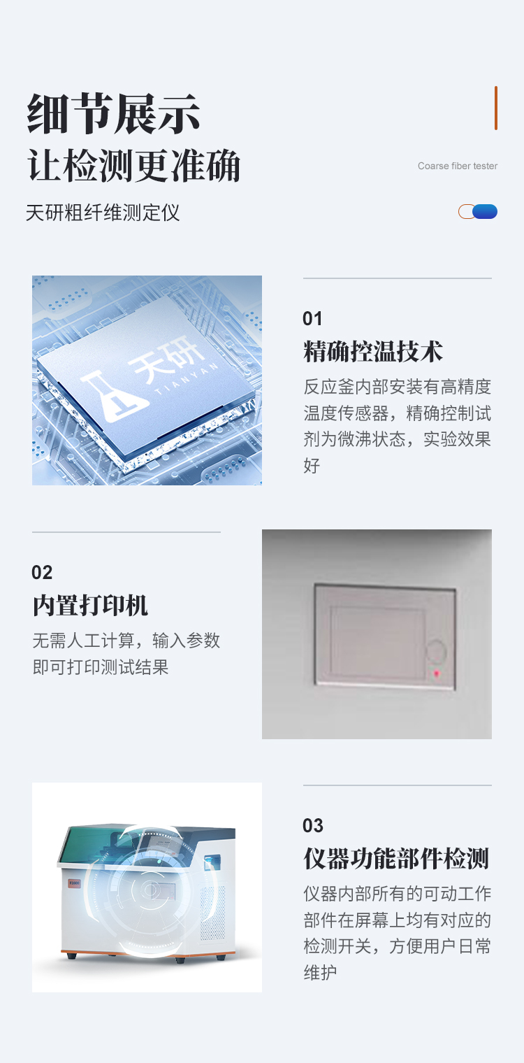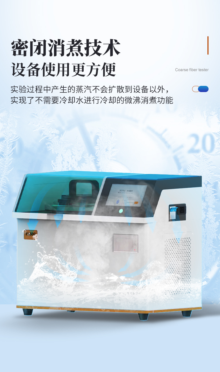 F系列粗纖維測定儀是采用三維濾袋方法,結(jié)合無冷卻水、高壓密封技術(shù)和現(xiàn)代電子技術(shù)研發(fā)的高通量、**率操作便捷的全自動粗纖維測定儀。半自動粗纖維測定儀是遵循國標(biāo)規(guī)定的消煮法,利用化學(xué)溶劑提取纖維含量,很好的解決了坩鍋抽濾、轉(zhuǎn)移法所造成的費工費時、火力控制不當(dāng)、殘渣易損失等問題,全自動進行溶劑加注、恒溫加熱、消煮、震蕩、廢液排出等操作。