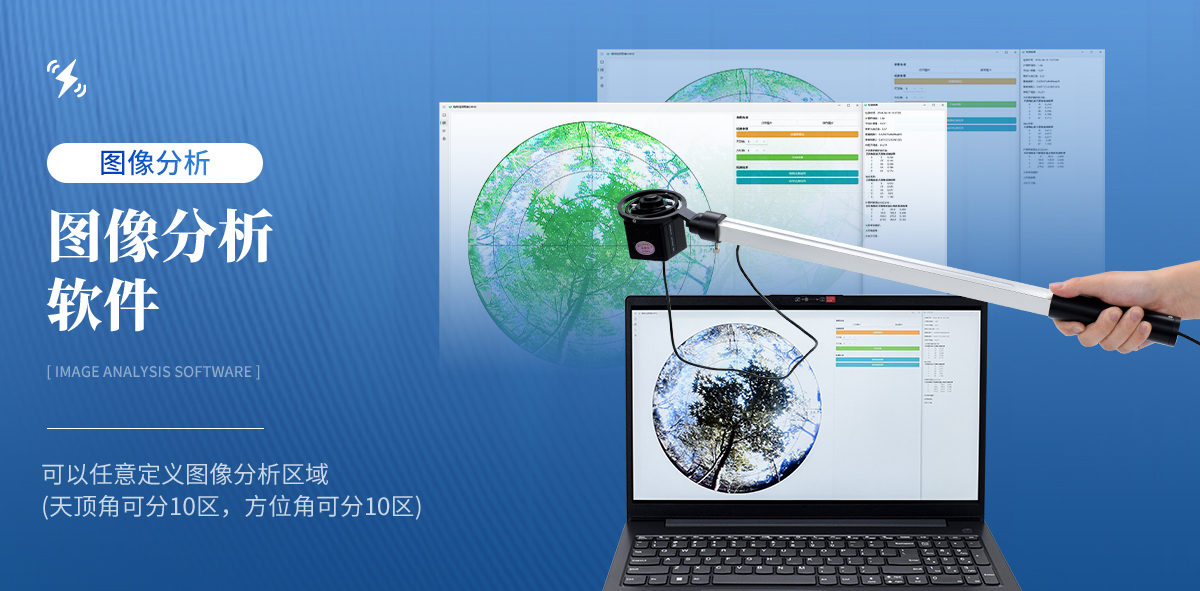 | 魚眼鏡頭可自動(dòng)保持水平狀態(tài):專門為植物冠層結(jié)構(gòu)測(cè)量設(shè)計(jì)的小型魚眼攝像鏡頭安裝在手持式萬向平衡接頭上,可自動(dòng)保持鏡頭處于水平狀態(tài),無需三角架 | 魚眼鏡頭可以伸入至冠層中:鏡頭安裝在搖臂一端,由于小巧和帶有測(cè)量桿,可以方便地水平向前或垂直向上伸入到冠層不同高度處,快速地進(jìn)行分層測(cè)量,測(cè)出群體內(nèi)光透過率和葉面積指數(shù)垂直分布圖 | 圖像分析軟件:圖像分析軟件可以任意定義圖像分析區(qū)域(天頂角可分10區(qū),方位角可分10區(qū)) | 可屏蔽不合理冠層部分:對(duì)不同方向的冠層進(jìn)行區(qū)域性分析時(shí),可以任意屏蔽地物景象和不合理的冠層部分(如缺株、邊行問題等)。對(duì)不同天頂角起始角和終止角的選擇,可以避開不符合計(jì)算該冠層結(jié)構(gòu)參數(shù)的冠層孔隙條件,通過手動(dòng)調(diào)節(jié)閾值,可以更精準(zhǔn)的測(cè)量出葉面積指數(shù)等參數(shù) | 軟件只適配Windows 10及Windows 10以上系統(tǒng) |