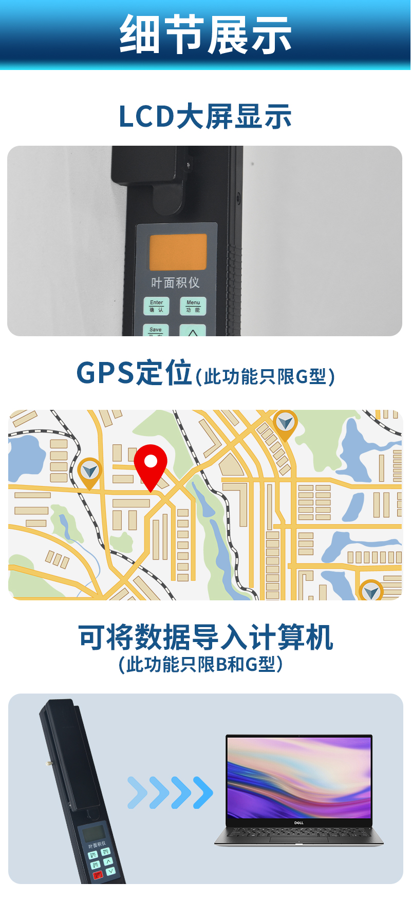 儀器可以直接測(cè)量葉片長(zhǎng)度、寬度和面積,并集成了GPS定位系統(tǒng),增加了RS232接口,可將測(cè)量數(shù)據(jù)和定位信息同時(shí)導(dǎo)入計(jì)算機(jī),方便廣大科研者對(duì)數(shù)據(jù)的進(jìn)一步處理。