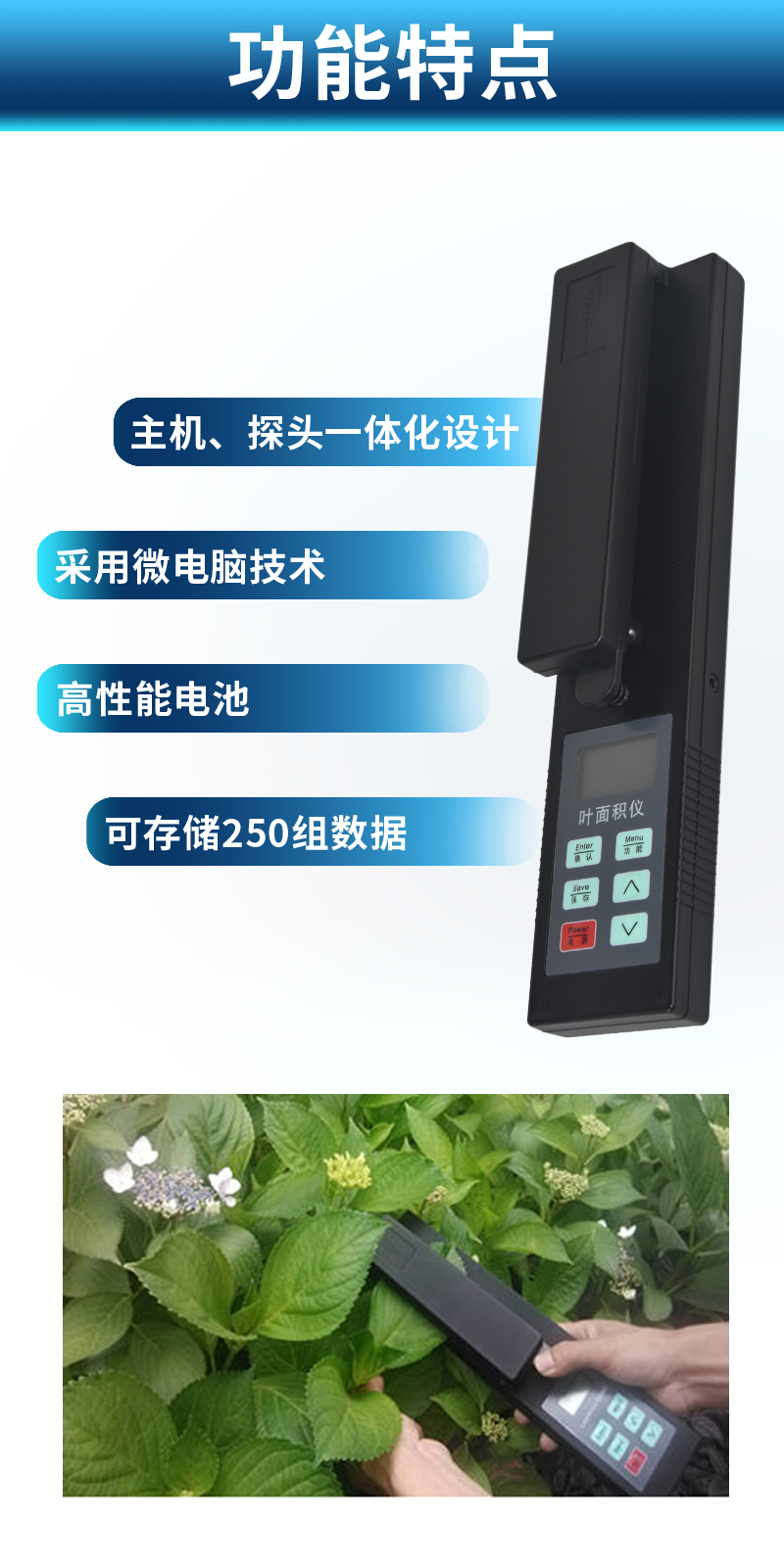 | 1)主機(jī)、探頭一體化設(shè)計(jì),更方便操作。 | 2)采用微電腦技術(shù),LCD大液晶顯示。 | 3)高性能電池,無需外部供電,低電壓顯示,更適用于野外測(cè)量。 | 4)一次性可測(cè)量較大葉片面積(1000*155mm2) | 5)可存儲(chǔ)250組數(shù)據(jù)(葉面積、葉長(zhǎng)、葉寬)。 | 6)可測(cè)量葉片的多種參數(shù):葉面積、平均葉面積、葉長(zhǎng)、葉寬。 | 7)通訊接口:RSR232接口,可將數(shù)據(jù)導(dǎo)入計(jì)算機(jī)。(此功能只限B和G型) | 8)GPS定位:集成高速GPS定位模塊,上傳數(shù)據(jù)都自帶時(shí)間、經(jīng)緯度信息,方便更有效的 |