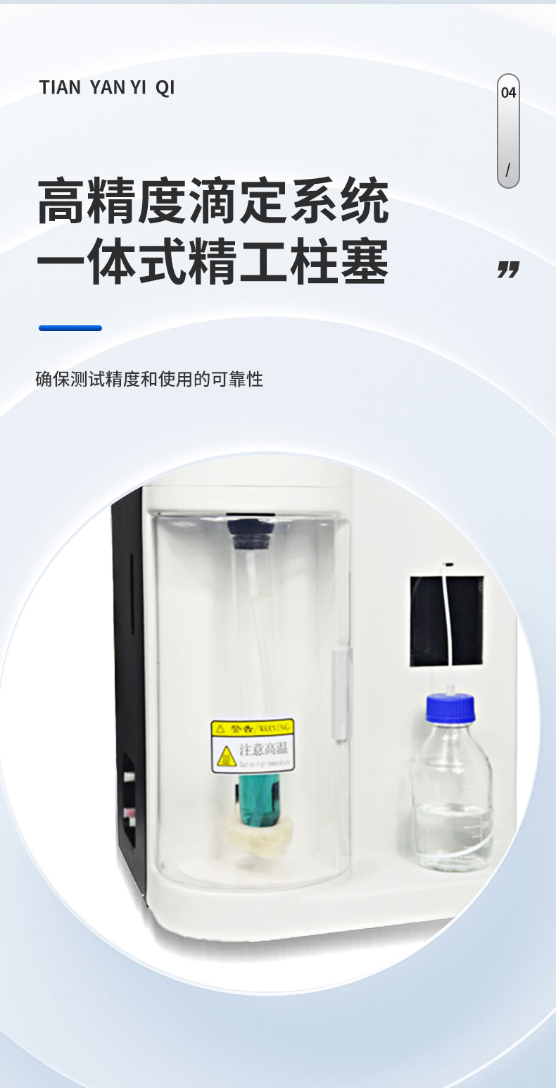 | 1. 采用國家標準的凱氏定氮方法,濃硫酸環(huán)境消解樣品、堿性環(huán)境蒸汽蒸餾、硼酸吸收、指示劑滴定終點顏色判斷法。并參與國家標準GB/T22923-2008、官方JJF109-2012《定氮儀校準規(guī)范》的起草; | 1. ☆全自動添加試劑、全自動蒸餾滴定、滴定杯全自動排廢清洗、全自動校正、全自動故障檢測、全自動溶液液位監(jiān)測、全自動計算、數(shù)據(jù)存儲、測試報告生成; | 2. 彩色液晶觸摸屏,蒸餾時間與試劑添加通過屏幕設(shè)定,條件可自動保存; | 3. 滴定顏色可自動與手動校準。滴定終點判定采用高精度的十六位三基色數(shù)字信號顏色傳感器采集顏色信號。 | 4. 2.0μL的高精度滴定系統(tǒng),專業(yè)的一體式精工柱塞。確保測試精度和使用的可靠性。 | 5. 彩色液晶觸摸屏,中英文操作界面可選,實時監(jiān)測和顯示實驗過程,條件可自動保存; | 6. 可存儲完整的測試數(shù)據(jù)1000組; | 7. 全自動故障檢測和提示:安全門、消化管到位監(jiān)測和提示,試劑液位監(jiān)測和提示,蒸汽爐液位和溫度檢測和提示; | 8. 采用成熟穩(wěn)定的蒸汽發(fā)生器技術(shù),自動預(yù)熱、補水,自動控制蒸汽壓力,自動防干燒,自動清洗; | 9. 自動控制蒸汽壓力在安全范圍之內(nèi),遠離蒸汽過壓危險; | 10.雙蒸餾模式,手動與自動任意切換; | 11.☆堿泵采用高可靠的聚四氟乙烯風箱泵,專用防腐蝕,耐顆粒堵塞,加液穩(wěn)定,負壓抽吸無危險; | 12.節(jié)水設(shè)計,冷卻水流量1.5L/min, 冷卻水只在蒸餾過程開啟,冷卻水流量實時監(jiān)控,低水壓報警顯示,停水自動終止運行; | 13.貼合氨逸出規(guī)律特殊設(shè)計的蒸餾系統(tǒng),確保高可靠的測試回收率; | 14.消化管周邊設(shè)施智能化設(shè)計,透明亞克力保護罩,將危險徹底隔離; | 15.蒸汽發(fā)生器具有壓力傳感器、溫度傳感器、溫度保護開關(guān)、水位雙重檢測等多重保護; | 16.儀器具備自檢功能、具備一鍵重置。 | 17.☆試劑桶液位監(jiān)測,保證實驗過程不出現(xiàn)缺液問題。 | 18.☆高分子材料防濺瓶設(shè)計。 |