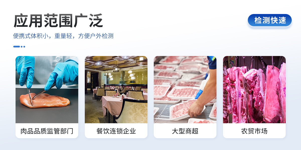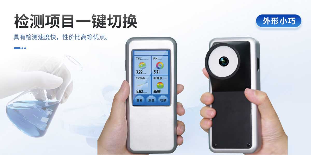聯(lián)合中國(guó)農(nóng)業(yè)大學(xué)彭彥昆教授團(tuán)隊(duì)研發(fā)的掌上式生鮮肉新鮮度分析儀,可用于檢測(cè)生鮮肉的TVC、pH、TVB-N、新鮮度、L*、A*、B*等評(píng)價(jià)指標(biāo)。Palmarter具有體積小、便 于攜帶、性價(jià)比高等特點(diǎn),其應(yīng)用場(chǎng)景包括但不限于肉儲(chǔ)運(yùn)企業(yè)、肉品品質(zhì)監(jiān)管部門、飯店、超市、菜場(chǎng)、家庭等。