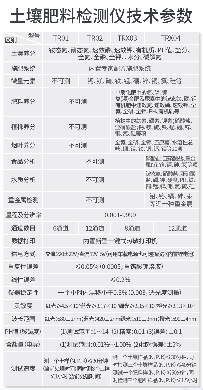 | 儀器測(cè)定項(xiàng)目:測(cè)定土壤、肥料、食品、蔬菜、水果中重金屬(鉛、砷、鉻、鎘、汞、鐵、鋅、錳、銅)。 | 儀器擴(kuò)展測(cè)試項(xiàng)目:儀器可以擴(kuò)展測(cè)定土壤、肥料養(yǎng)分含量。 |