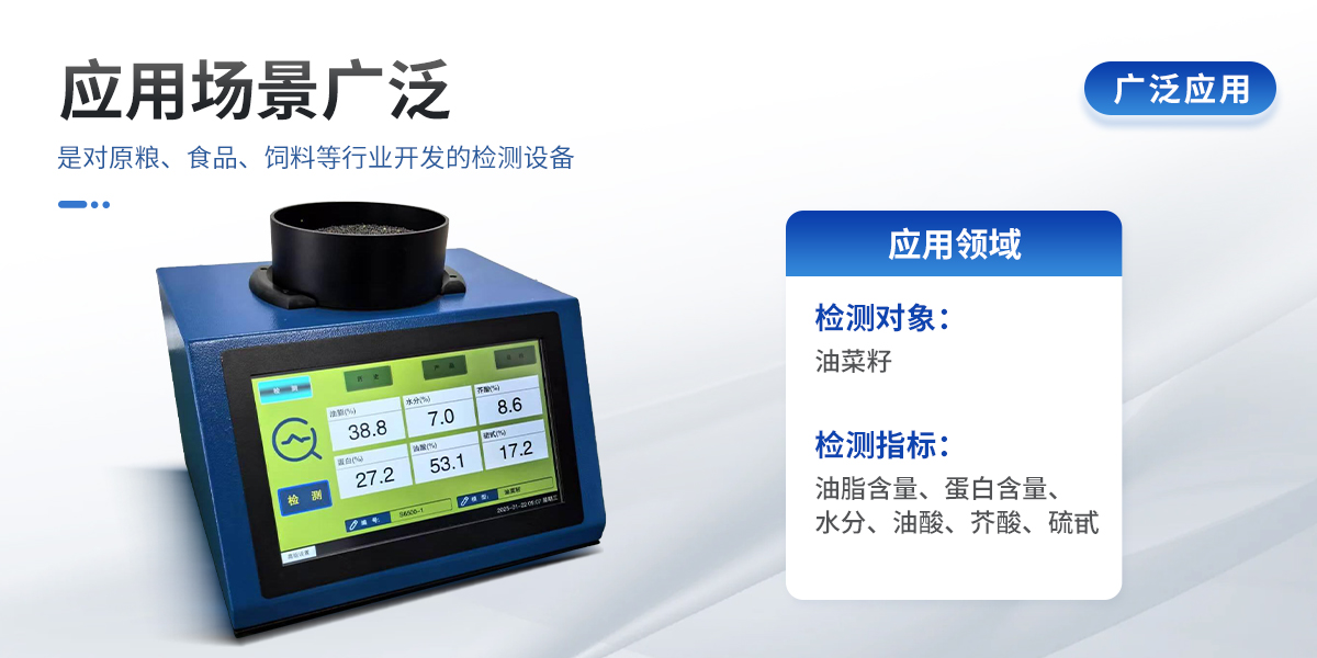 近紅外油菜籽檢測(cè)儀,是針對(duì)原糧、食品、飼料等行業(yè)開發(fā)的專用 檢測(cè)設(shè)備,可無(wú)損、快速、準(zhǔn)確地檢測(cè)樣本的水分、脂肪、蛋白質(zhì)等多種指標(biāo)。