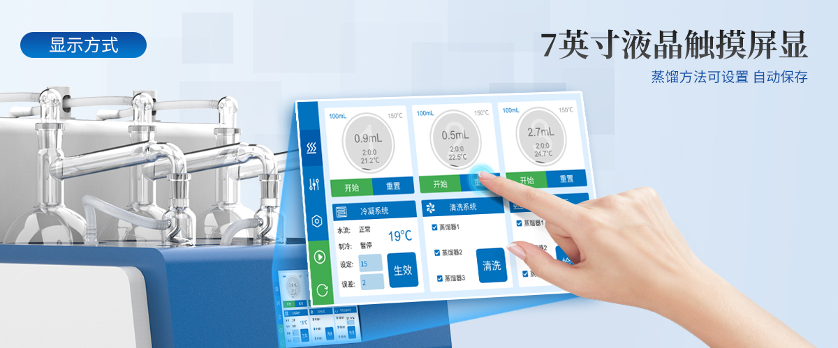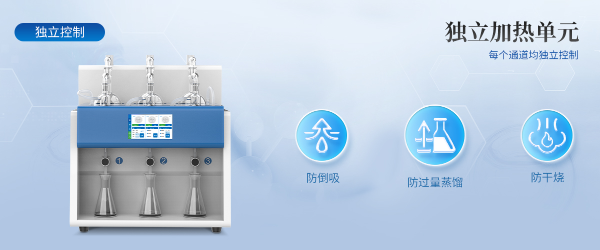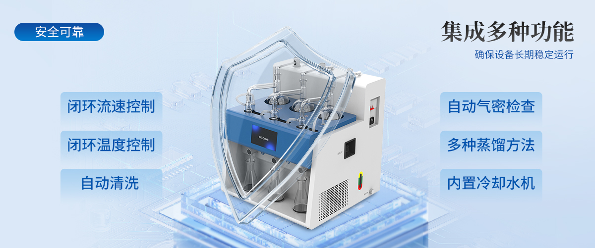 | 1.自動化程度高:內(nèi)置冷卻水循環(huán)機,實現(xiàn)全自動化操作,提高實驗效率與準確性。 | 2.多通道獨立控制:3個加熱單元各自獨立,配備防倒吸、防過量蒸餾及防干燒保護。 | 3.智能觸控:7寸液晶觸摸屏,支持自定義保存最多1000種蒸餾方法,內(nèi)置18種國標方法。 | 4.精準控制:采用**陶瓷遠紅外加熱,具備時間與重量雙重終點控制,確保蒸餾精度達0.1ml。 | 5.安全可靠:集成自動清洗、自動氣密檢查、反吹等功能,確保設備長期穩(wěn)定運行。 | 6.操作簡便:一鍵啟動,支持遠程OTA系統(tǒng)升級,滿足不同用戶的使用需求。 |