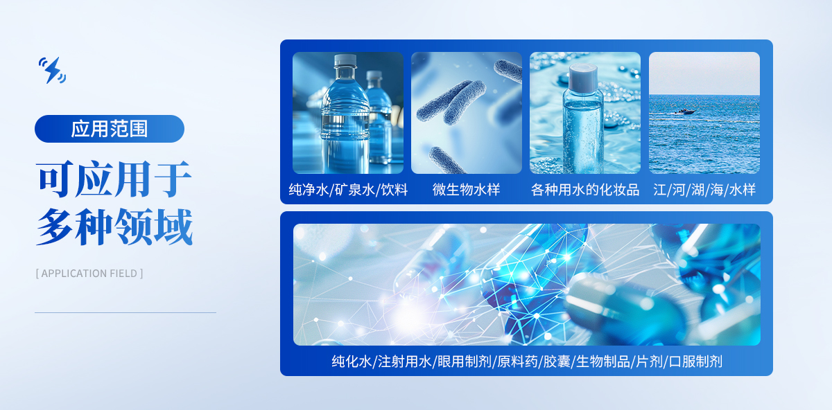 | 1.制藥:純化水、注射用水、原料藥及口服液、片劑、膠囊、生物制品及制劑的微生物限度檢查。 | 2.疾控:空調(diào)冷凝水、生活飲用水等水質(zhì)的細(xì)菌總數(shù)檢查,致病菌檢測。 | 3.食品:飲料、礦泉水、純凈水的菌落總數(shù)檢查。 | 4.化工:各種需測試微生物的水樣檢測。 |