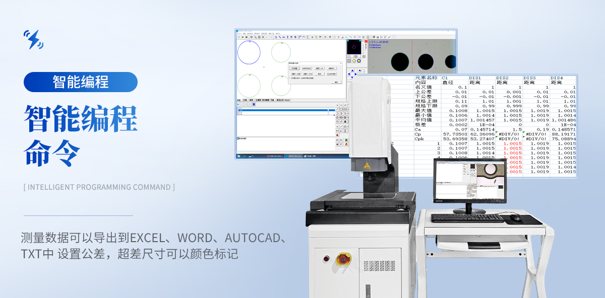 4、測(cè)量數(shù)據(jù)可發(fā)送到Excel中,進(jìn)行統(tǒng)計(jì)分析.☆中文 英文 繁體三種語(yǔ)言界面切換