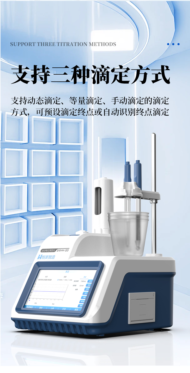 4、支持動(dòng)態(tài)滴定、等量滴定、手動(dòng)滴定的滴定方式,可預(yù)設(shè)滴定終點(diǎn)或自動(dòng)識(shí)別終點(diǎn)滴定,方便用戶(hù)根據(jù)樣品特性選擇**滴定工作流程;