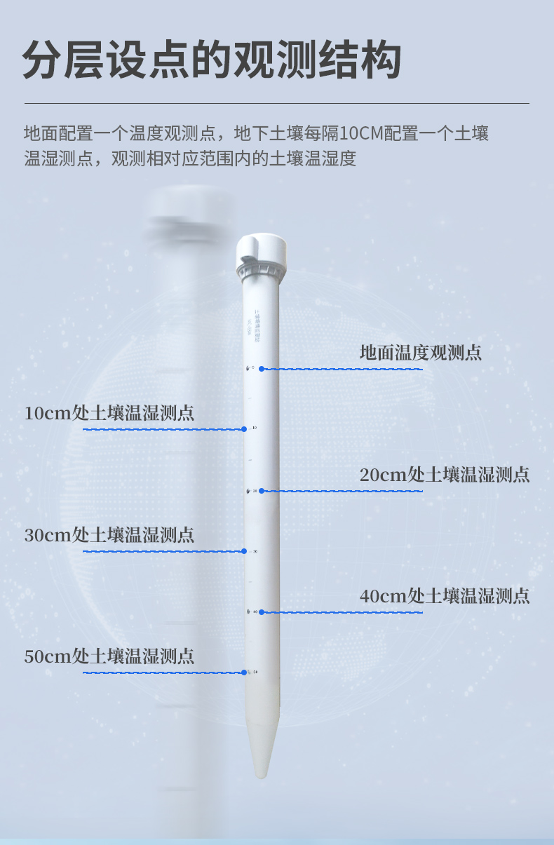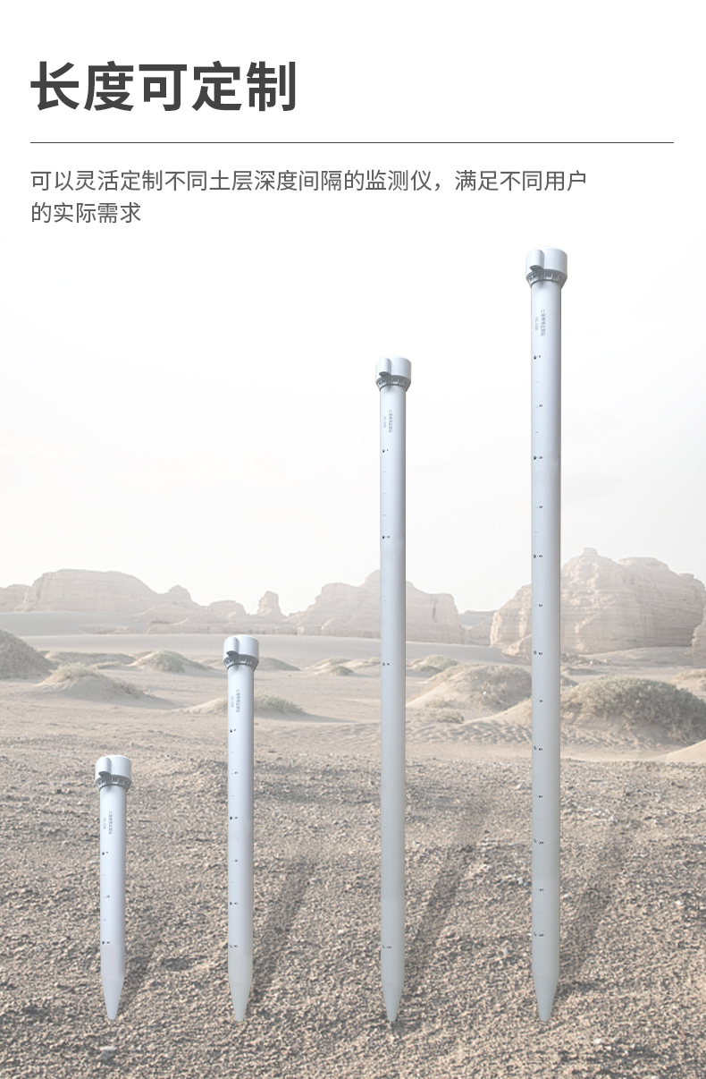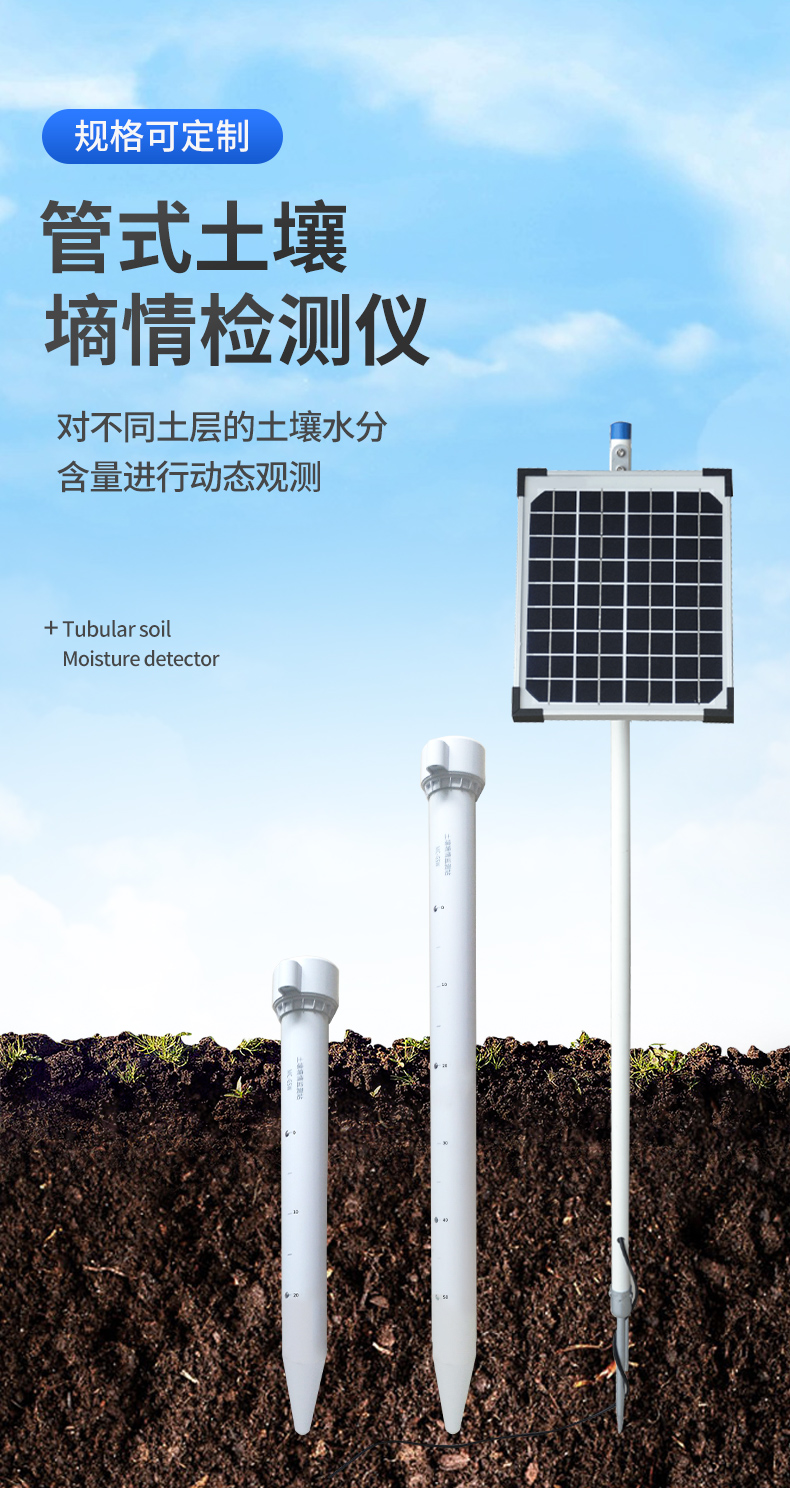 管式土壤墑情監(jiān)測儀是一款基于介電常數(shù)原理而研發(fā)的傳感器,可以針對不同土層的水分、溫度含量進行快速、準確、全面監(jiān)測。該傳感器監(jiān)測層數(shù)支持定制,**可測三層土壤溫濕度,**可測十層土壤溫濕度。