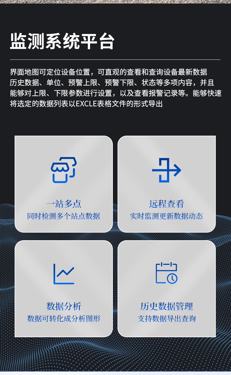 該產(chǎn)品可快速、全面了解土壤墑情信息,為抗旱救災提供決策支持,最大限度地減輕災害損失。產(chǎn)品采用標準的Modbus-RTU485通信,最遠可通信2000米,支持二次開發(fā)。