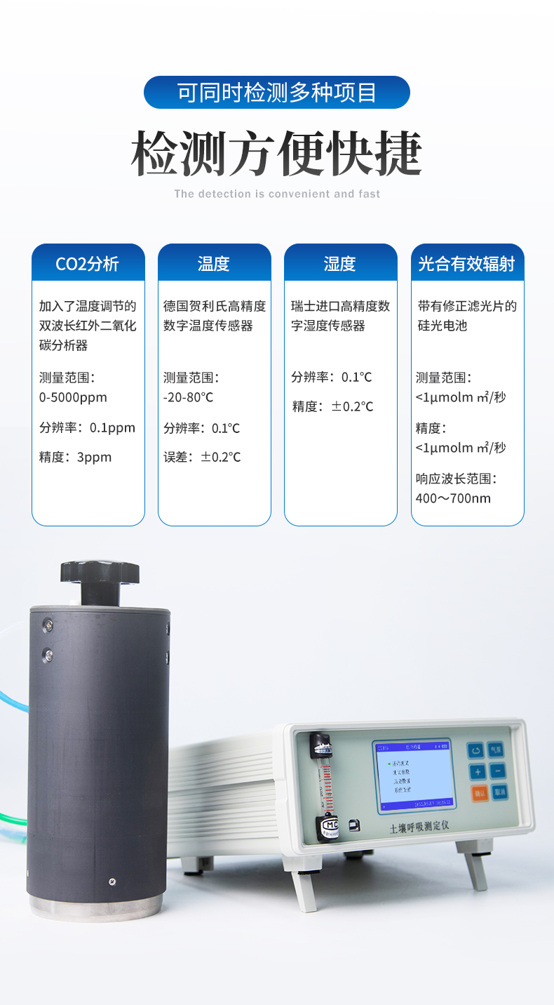 土壤呼吸是土壤生態(tài)系統(tǒng)碳素循環(huán)的一個重要過程,是土壤碳素同化異化平衡作用的結(jié)果,也是碳素由陸地生態(tài)系統(tǒng)返回大氣的主要途徑,是土壤中生命活動的表征,準確測定其釋放量是評價生態(tài)系統(tǒng)中生物學(xué)過程的關(guān)鍵;通過對土壤呼吸及其相關(guān)參數(shù)的監(jiān)測,可估測根系和土壤微生物對氣候變化的響應(yīng)。土壤CO2通量在時間和空間上受多種復(fù)雜物理和生物過程影響,長期、連續(xù)、準確的測量土壤碳通量,對陸地生態(tài)系統(tǒng)碳通量研究具有重要的意義。土壤呼吸測定儀可以同時顯示呼吸室內(nèi)部的CO2濃度、溫度和濕度變化以及外部光合有效輻射強度。廣泛應(yīng)用于農(nóng)業(yè)生態(tài)科研、碳源碳匯研究、全球氣候變化、土地利用方式改變、生態(tài)修復(fù)研究、土壤微生物活力評估、植物生態(tài)研究、昆蟲呼吸、根系呼吸以及水果貯藏。 產(chǎn)品適用于農(nóng)業(yè)農(nóng)村局、高校、科研院所、水利局、環(huán)保局、企事業(yè)單位。