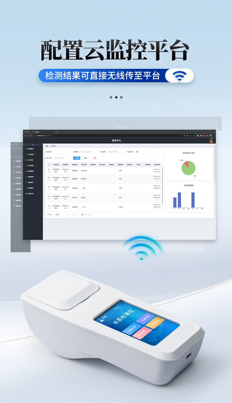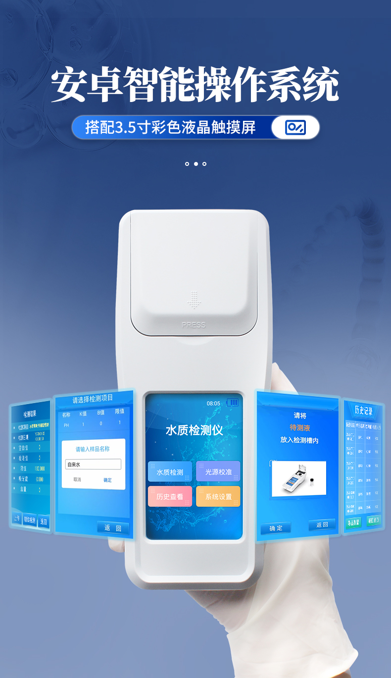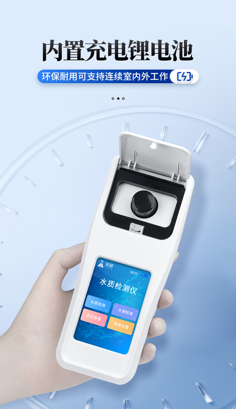 | 1、安卓智能系統(tǒng),操作更佳簡便快捷; | 2、配置云監(jiān)控平臺,檢測結果可直接無線傳至平臺,進行水質(zhì)長短期分析,輔助管理; | 3、內(nèi)置操作流程、操作簡單、無需培訓、直接上手; | 4、檢測速度更快,現(xiàn)場讀取數(shù)據(jù); | 5、便攜式體積小,重量輕,方便戶外檢測; | 6、外形小巧美觀,工作穩(wěn)定免維護,具有較好的性價比; | 7、采用進口冷光源,光學性能穩(wěn)定,壽命長達10萬小時; | 8、交直流兩用,內(nèi)置充電鋰電池,環(huán)保耐用可支持連續(xù)室內(nèi)外工作。 |
