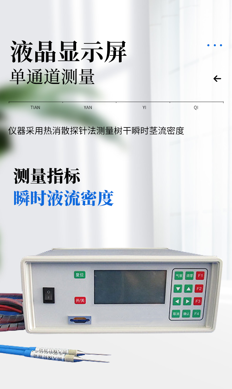 植物莖流測(cè)量?jī)x采用熱消散探針?lè)y(cè)量樹(shù)干瞬時(shí)莖流密度,可以長(zhǎng)期連續(xù)觀測(cè)樹(shù)木的液流,有利于研究樹(shù)木和大氣之間的水分交換規(guī)律,并以此為觀測(cè)手段,長(zhǎng)期監(jiān)測(cè)森林生態(tài)系統(tǒng)對(duì)環(huán)境變化的影響。對(duì)于造林綠化、森林管理和林業(yè)管理等具有重要的理論指導(dǎo)意義和應(yīng)用價(jià)值。