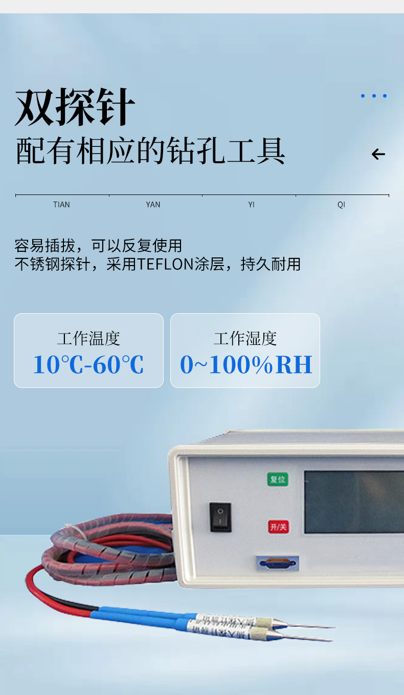 | 雙探針設(shè)計(jì),配有相應(yīng)的鉆孔工具,安裝簡(jiǎn)便,可反復(fù)使用 | 采用熱消散法,可恒溫加熱,測(cè)量穩(wěn)定可靠 |