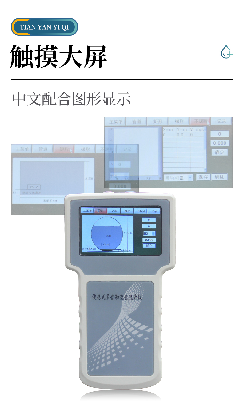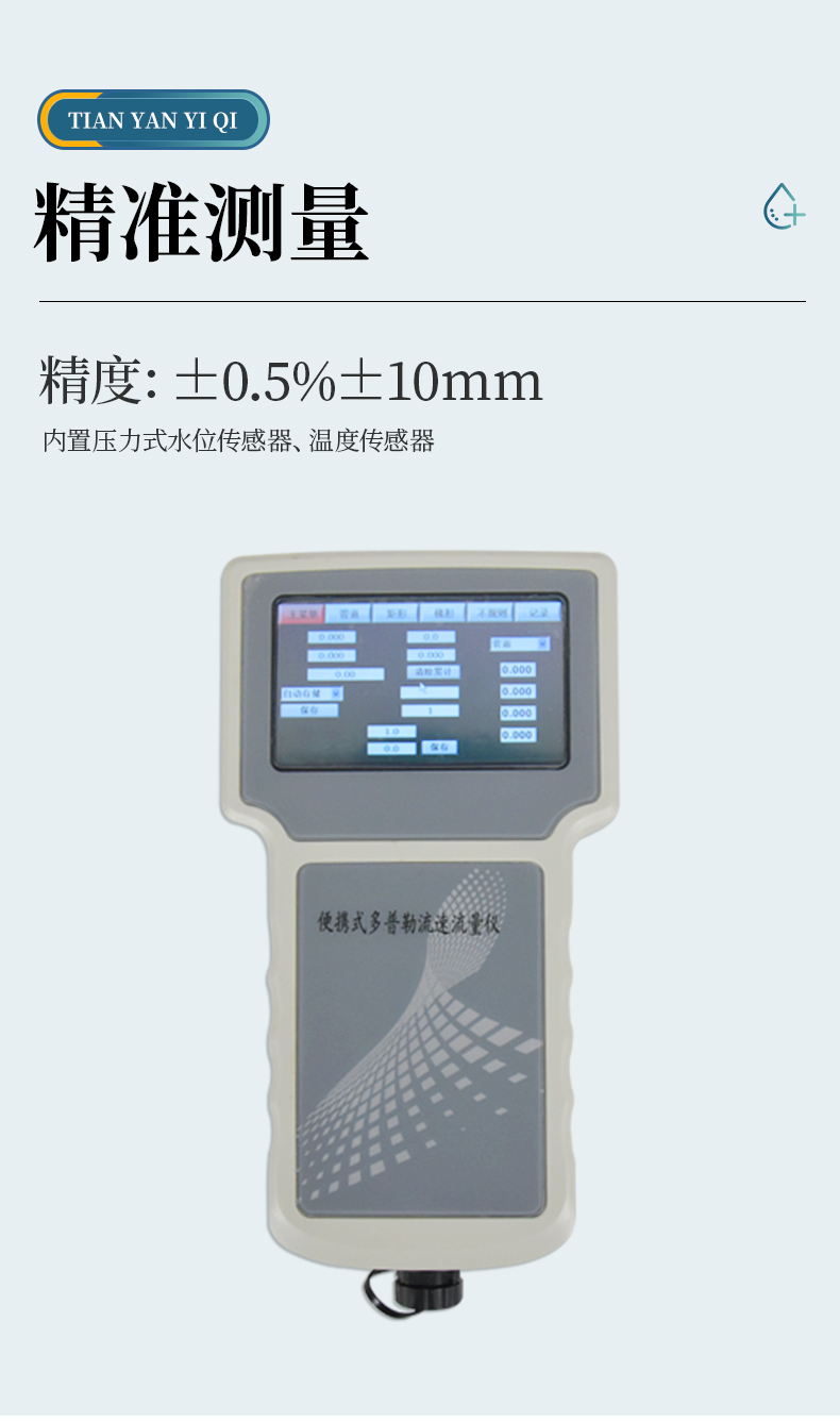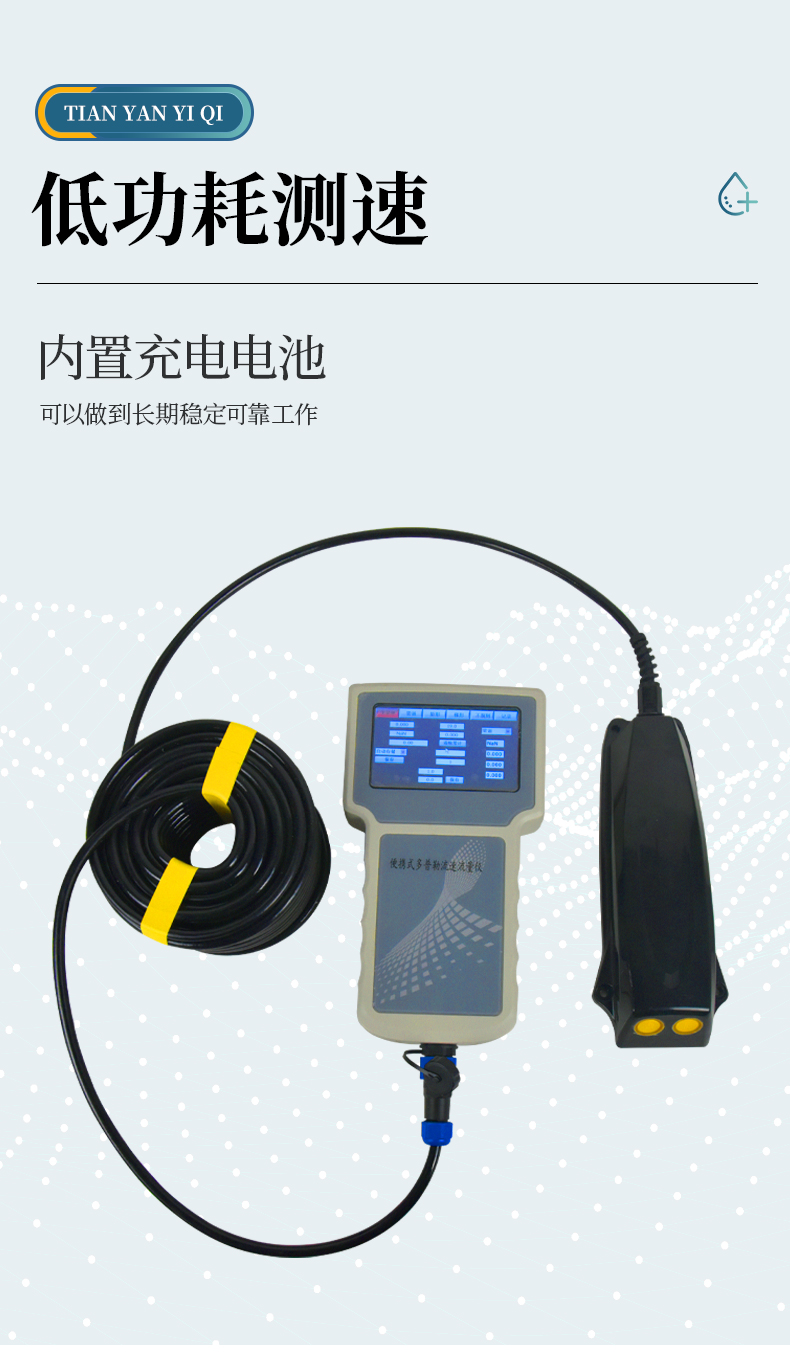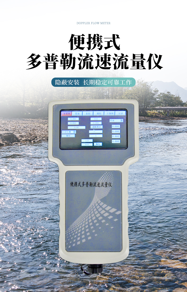 多普勒流速儀原理:當(dāng)超聲波聲源和觀察者做相對運動時,觀察者接收到的頻率就會和超聲波聲源頻率不同。因此,相對于超聲波換能器的隨水移動的小顆粒、小氣泡也會使換能器接收頻率改變,且隨水中懸浮運動速度的增加而增加, 由此測出多普勒頻移,也就測出了多普勒流速儀所處點水的流速。 主要用于灌溉明渠,市政下水管道,水文流域等場合。特別適合低水位的場合,水位超過 15 厘米就可以工作。在規(guī)則的管道、渠道,通過流速儀上的壓力傳感器測得水深,超聲傳感器測得流速,可以方便地計算出流量。